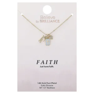 - Skillfully Manufactured: Believe by Brilliance Women’s 14Kt Gold Flash Plated Cubic Zirconia “Faith” Charm Necklace, 18+2″